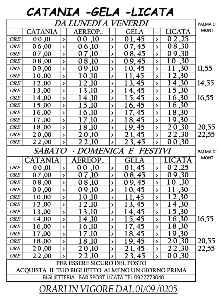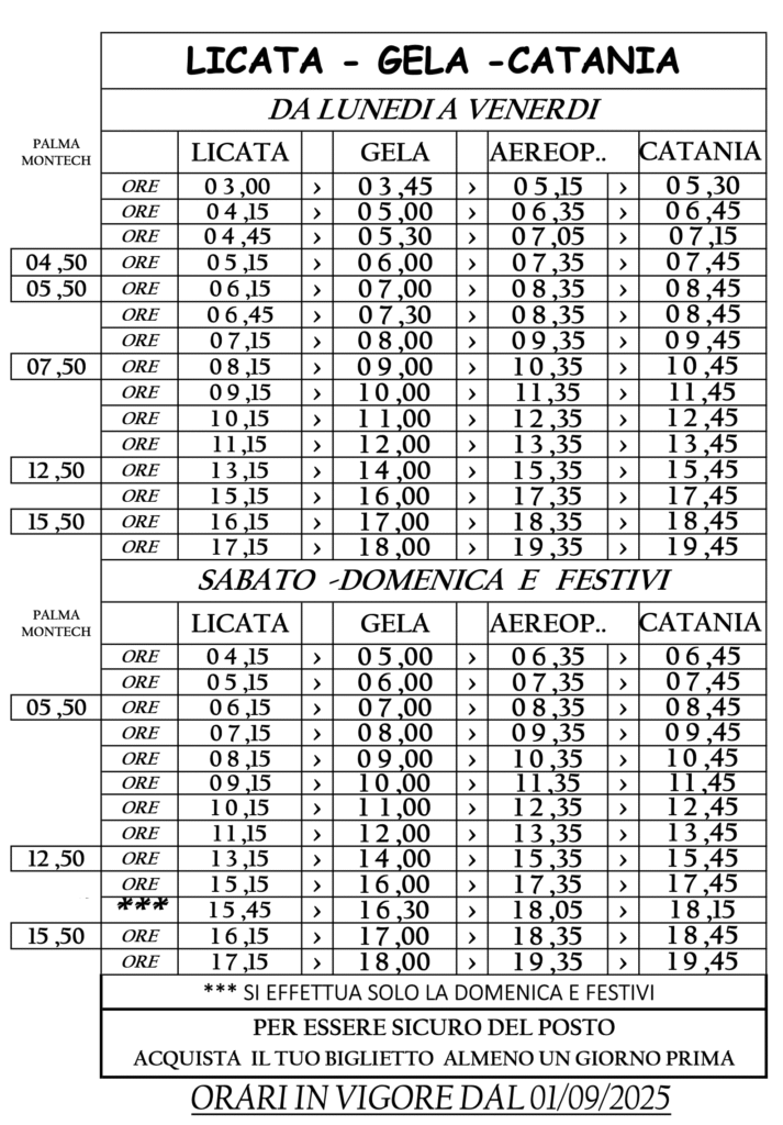 LICATA – GELA – AEROPORTO FONTANAROSSA – CATANIA